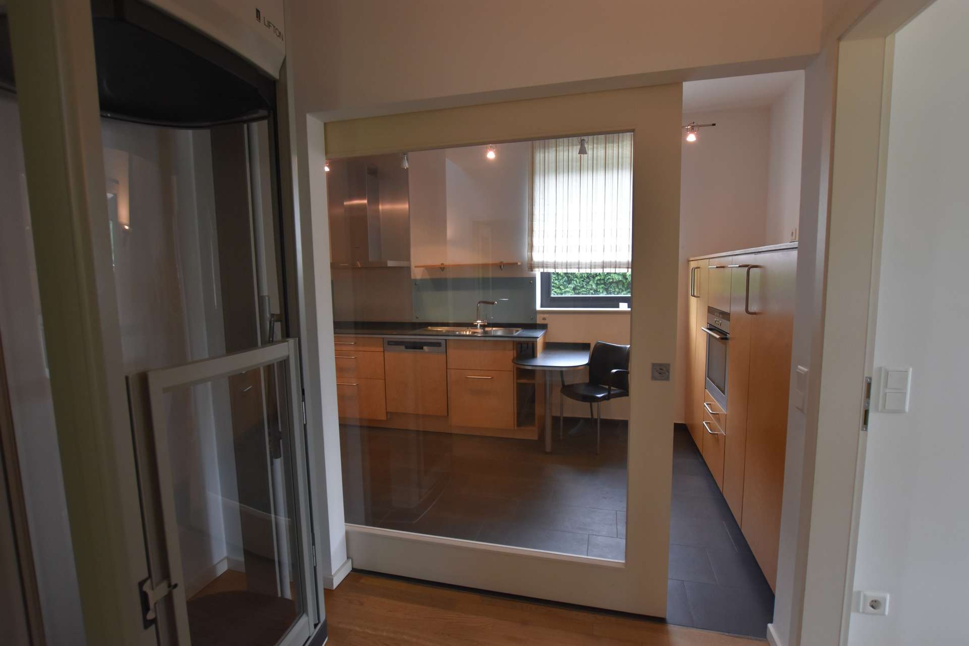 Ein besonderes Komfortmerkmal ist der moderne Einmann-Fahrstuhl, der das Erdgeschoss direkt mit dem Obergeschoss verbindet. Diese Ausstattung bietet nicht nur Barrierefreiheit, sondern auch einen Hauch von Luxus und Bequemlichkeit im Alltag.