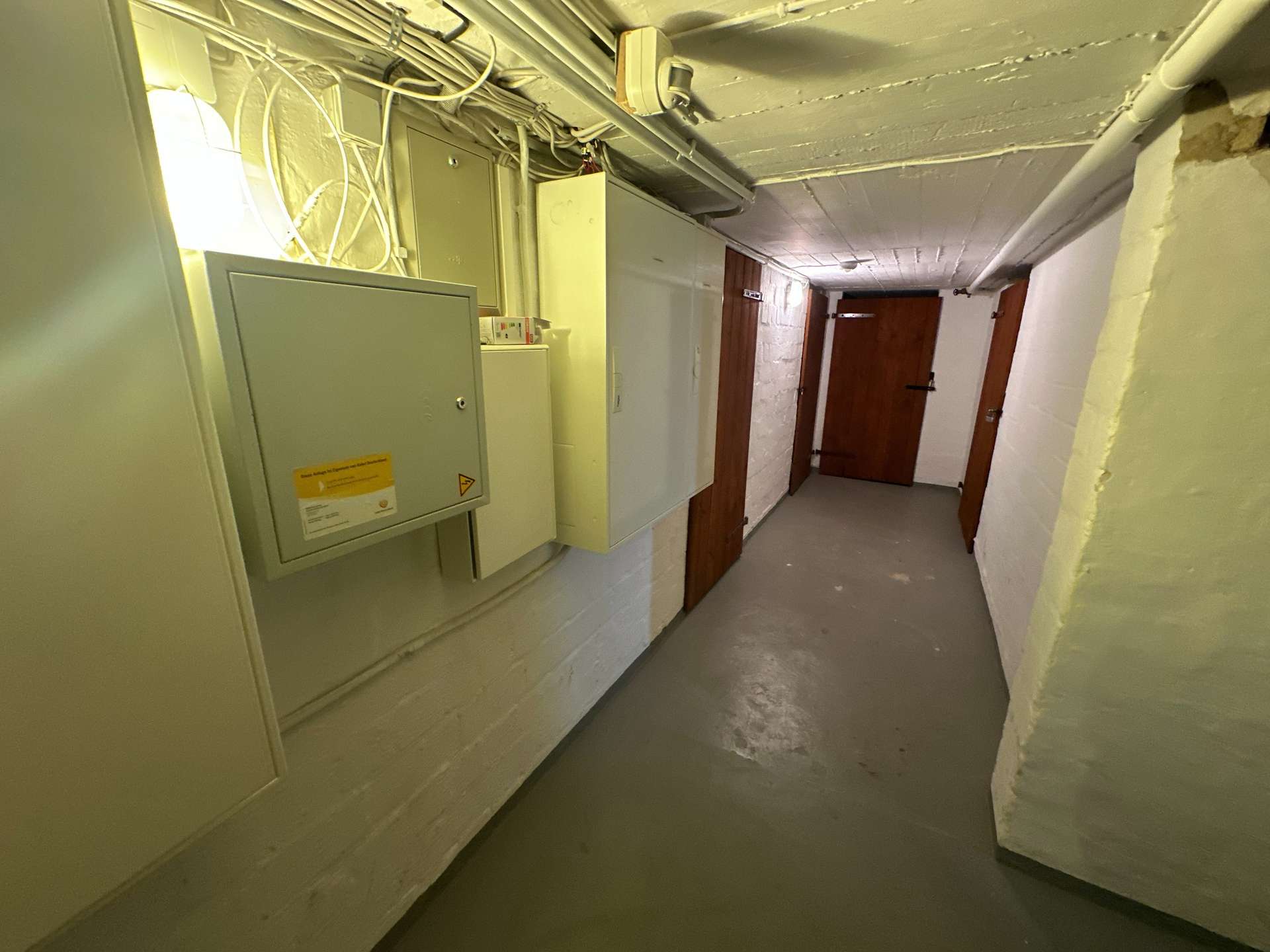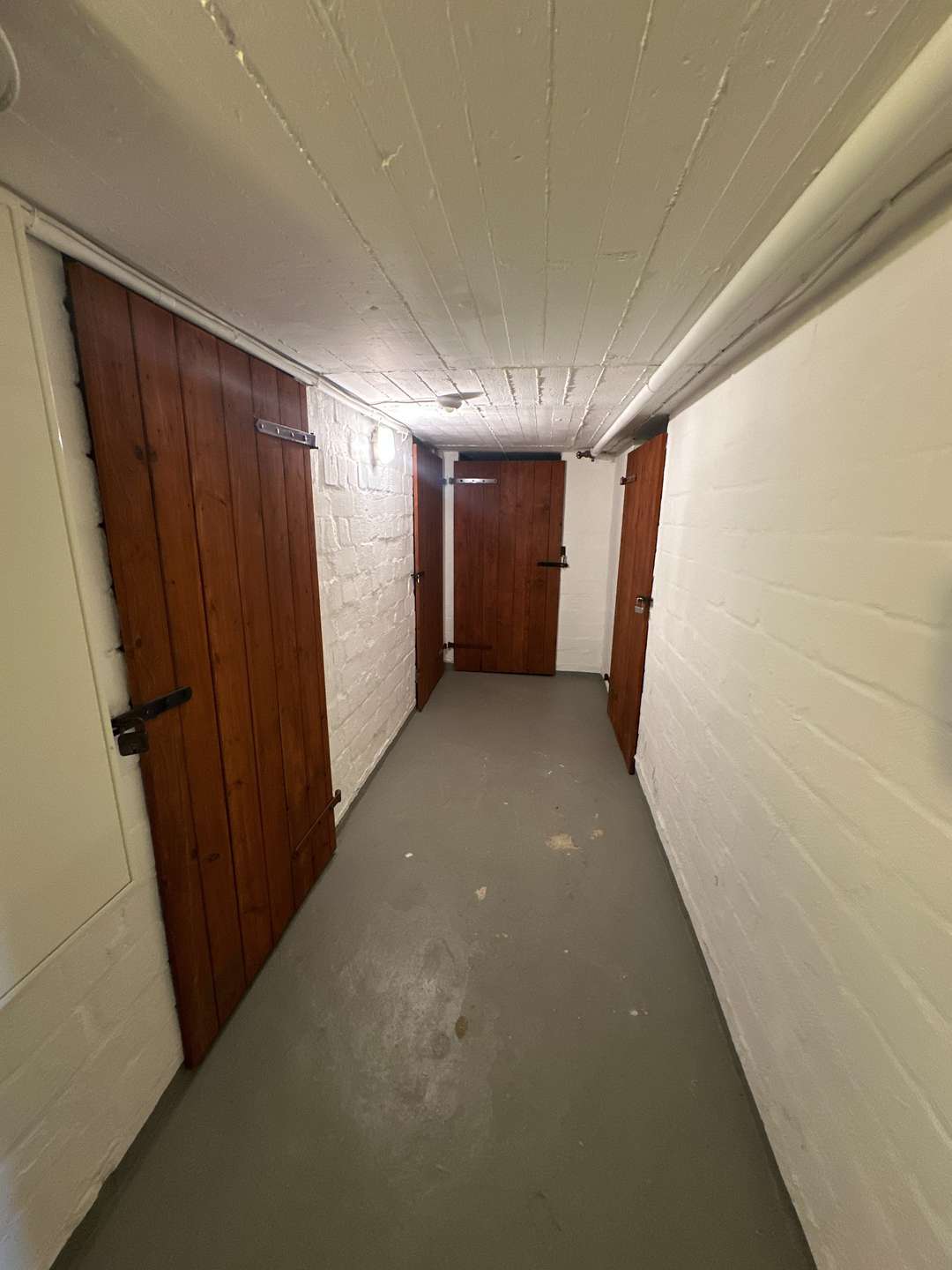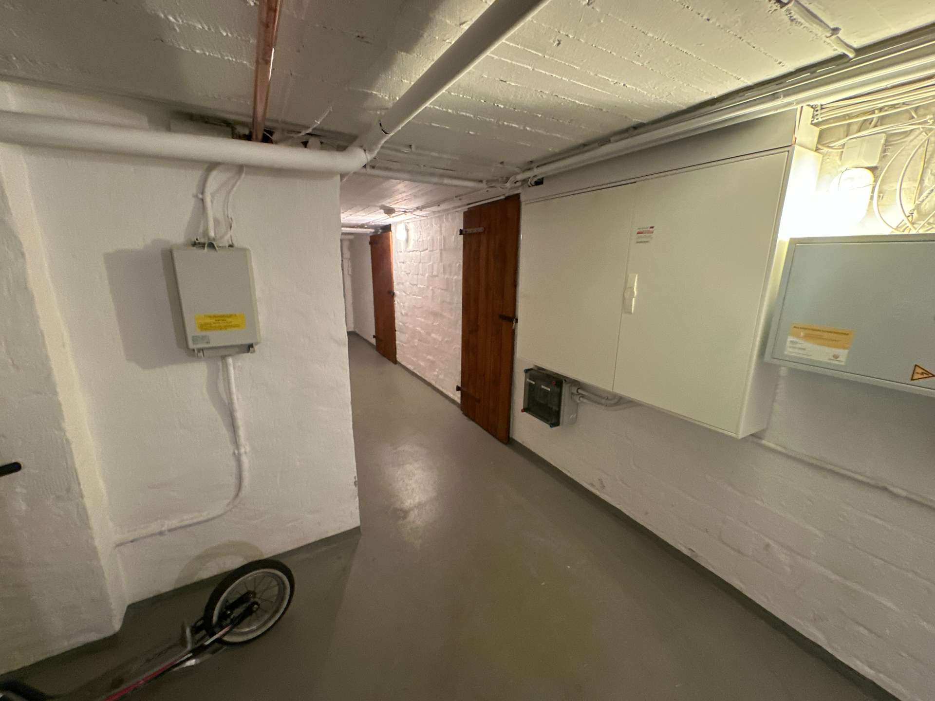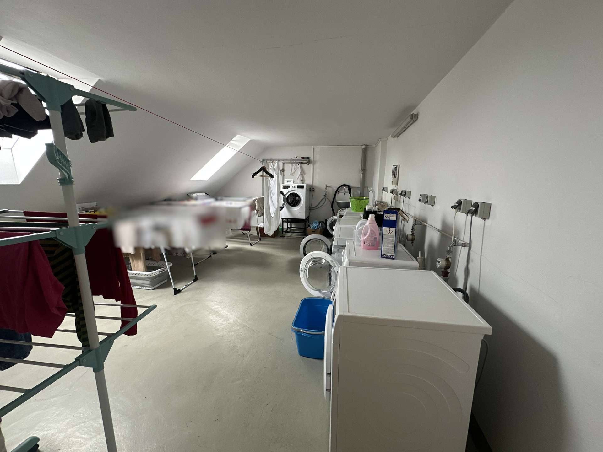 Zur Wohnung gehören außerdem ein großer Kellerraum sowie gemeinschaftliche Flächen im Dachgeschoss. Dort befinden sich eine separate Waschküche mit Anschlussmöglichkeiten für Waschmaschine und Trockner sowie ein Trockenraum zum Aufhängen der Wäsche. Alle Gemeinschaftsflächen sind sehr gepflegt und werden regelmäßig gereinigt.