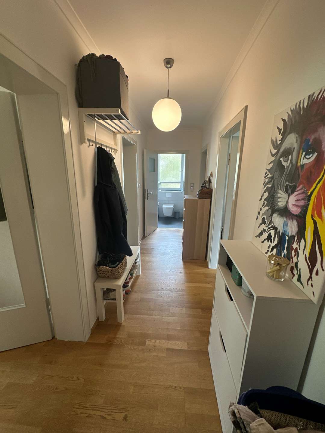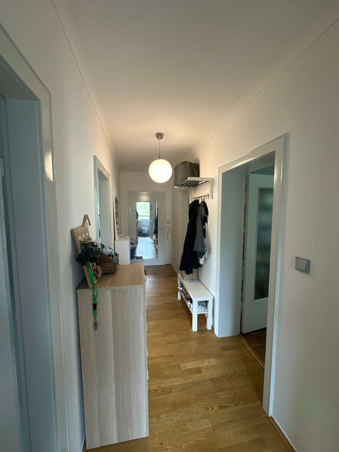 Die Eigentumswohnung überzeugt durch einen gut durchdachten Grundriss. Vom zentralen Flur aus sind alle Räume separat begehbar. Auf der linken Seite befindet sich das Kinderzimmer, das durch seine angenehme Größe und das große Fenster besonders hell wirkt. Im Kinderzimmer, im Flur und im Schlafzimmer wurde hochwertiges Echtholzparkett verlegt, das den Räumen eine warme Atmosphäre verleiht.