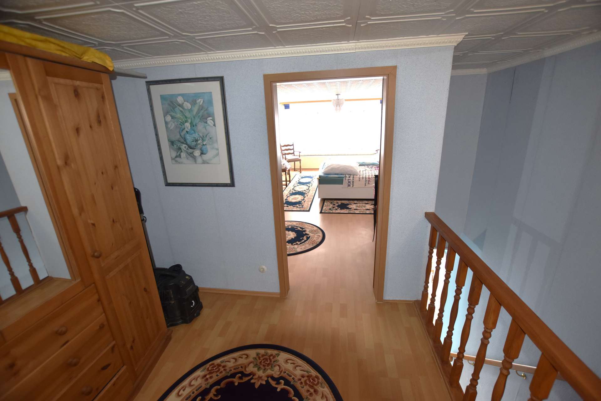 Die insgesamt neun Zimmer verteilen sich auf zwei Etagen mit jeweils vier bzw. fünf Räumen. Eine große Ausbaureserve im Dachgeschoss eröffnet weiteres Potenzial – ideal für zusätzliche Schlafzimmer oder Hobbyräume. Zusätzlich stehen ein separater Hobbyraum, ein Waschraum und viel Stauraum zur Verfügung. Auch ein Wasserentkalker ist vorhanden.