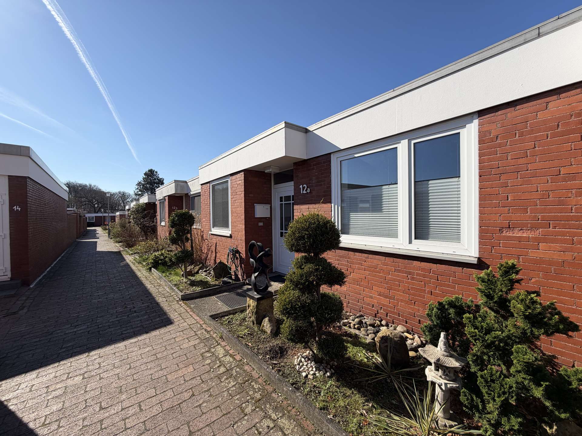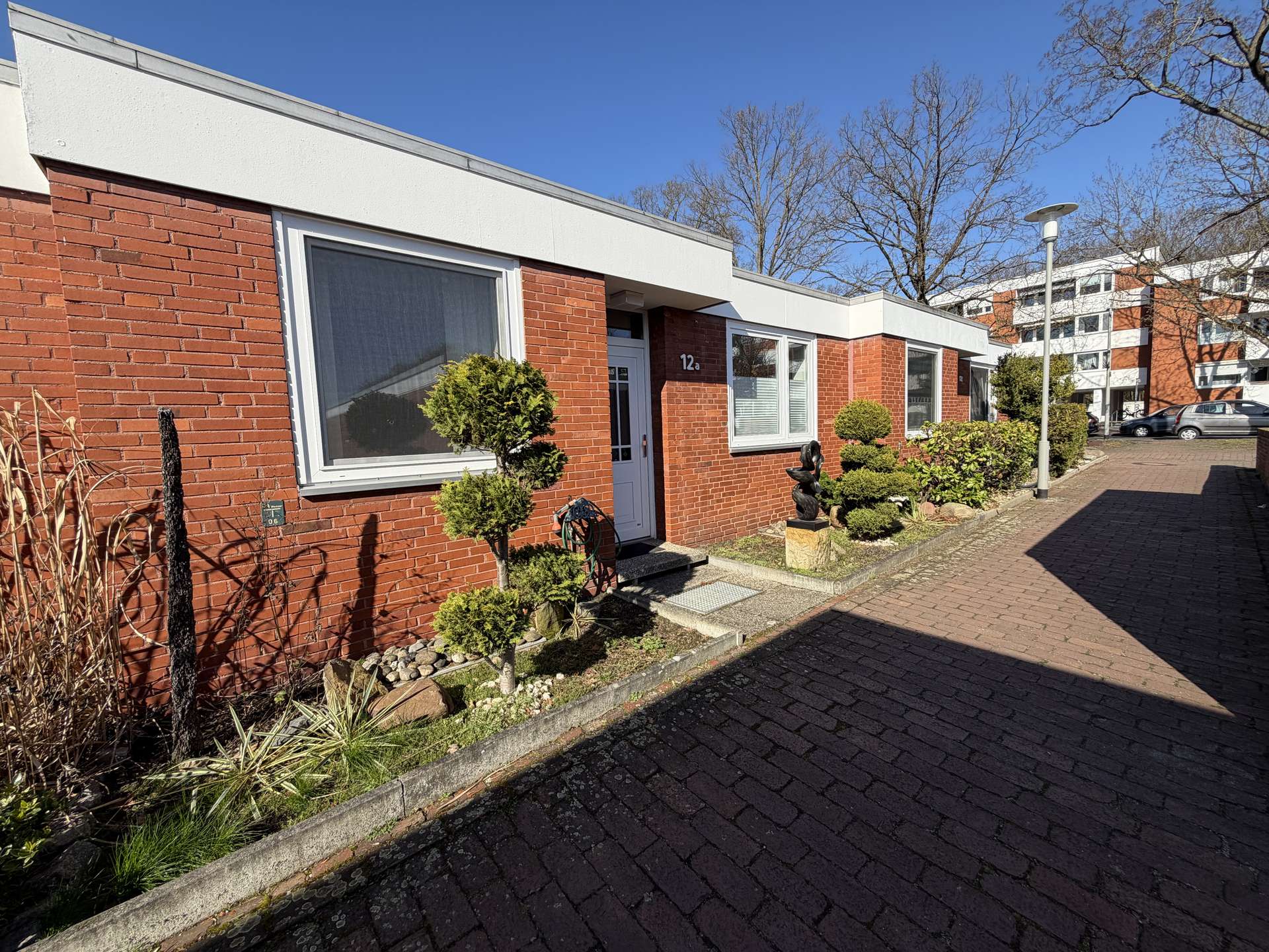 Dieser charmante Atrium-Bungalow befindet sich in der sehr beliebten Gartenhofsiedlung von Marienwerder und vereint die charakteristische Architektur der 1960er Jahre mit modernen Elementen und einem durchdachten Raumkonzept. Die ruhige und denkmalgeschützte Wohnanlage zeichnet sich durch ihre besondere Bauweise mit geschützten Innenhöfen aus und bietet ein hohes Maß an Privatsphäre.