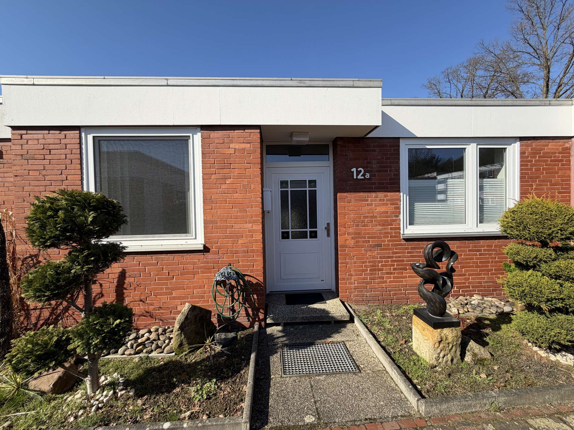 Dieser charmante Atrium-Bungalow befindet sich in der sehr beliebten Gartenhofsiedlung von Marienwerder und vereint die charakteristische Architektur der 1960er Jahre mit modernen Elementen und einem durchdachten Raumkonzept. Die ruhige und denkmalgeschützte Wohnanlage zeichnet sich durch ihre besondere Bauweise mit geschützten Innenhöfen aus und bietet ein hohes Maß an Privatsphäre.