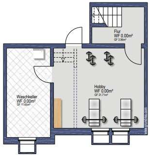 zusätzlich beheizte Kellerräume (z. B. Hobbyraum oder Büro)