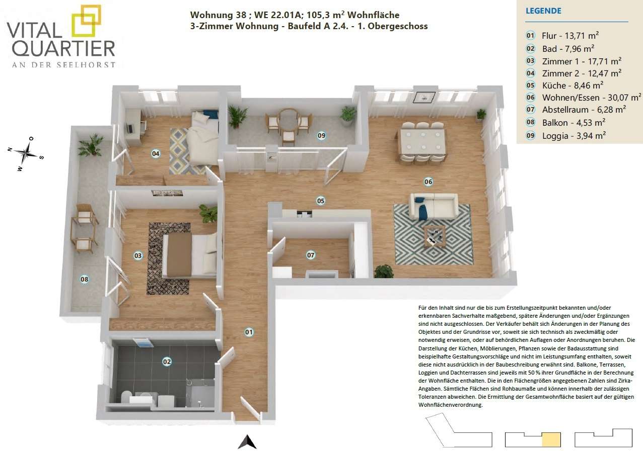 Unser Projekt VITALQUARTIER an der Seelhorst wird Sie mit seiner Vielfalt an Wohnformen und Bewohnenden sowie den zahlreichen Angeboten im Quartier begeistern. Das Quartier wird zukünftig 357 moderne und barrierearme, zum Teil barrierefreie oder rollstuhlgerechte Wohnungen mit 1 bis 4 Zimmern sowie 23 Reihenhäuser mit 4 bis 5 Zimmer beherbergen.