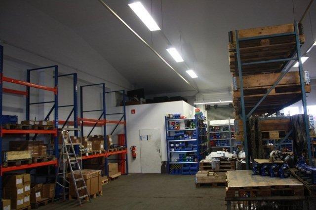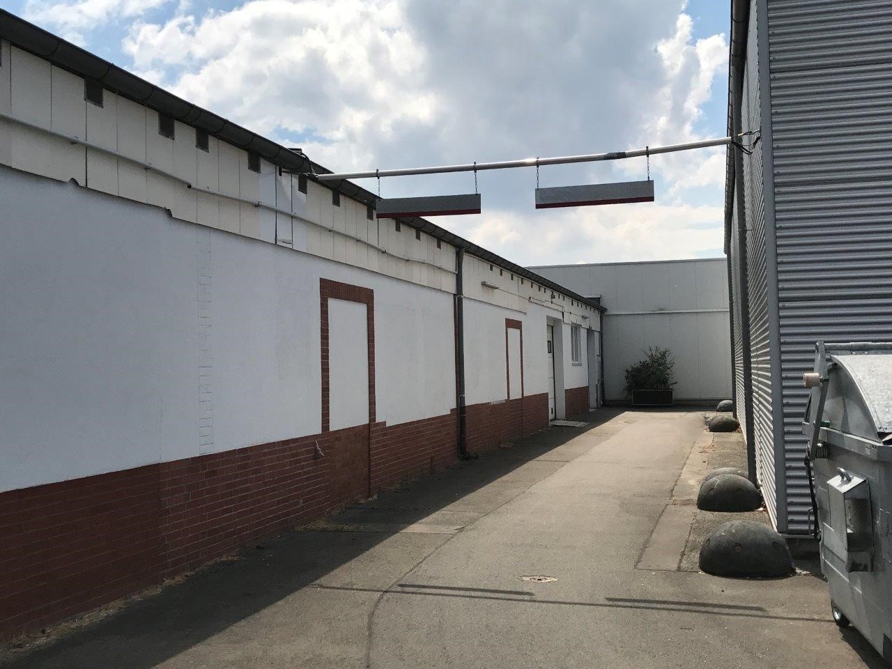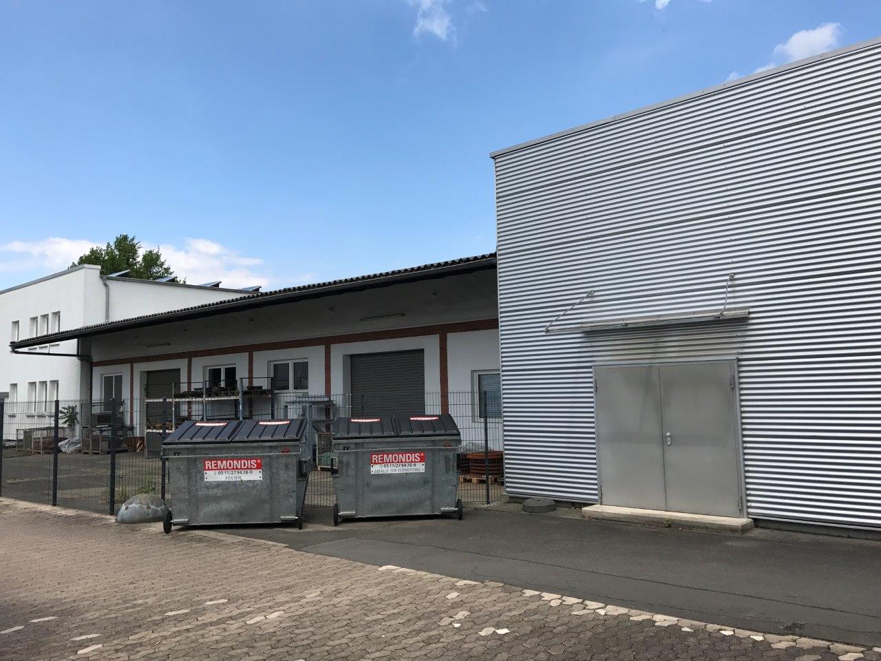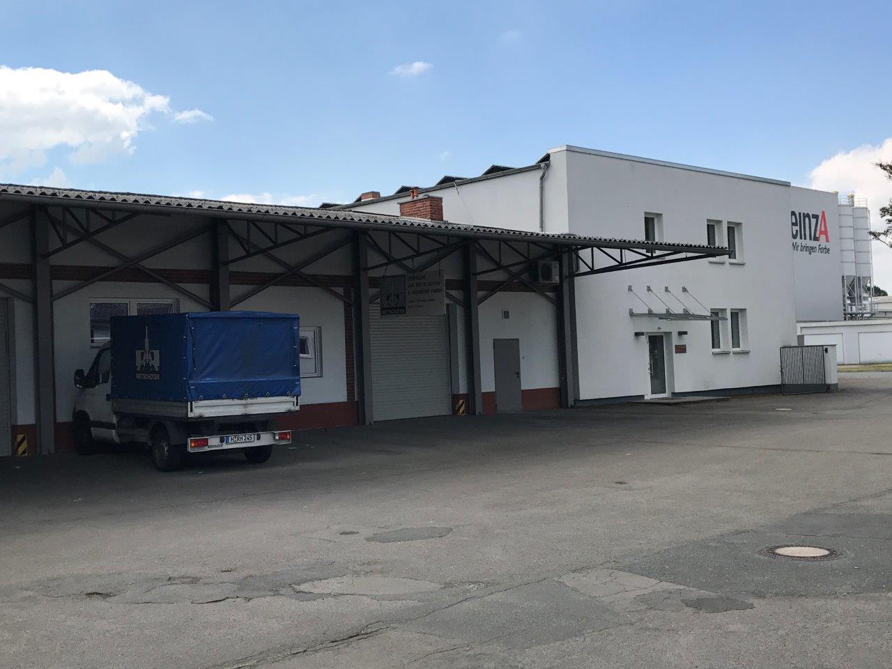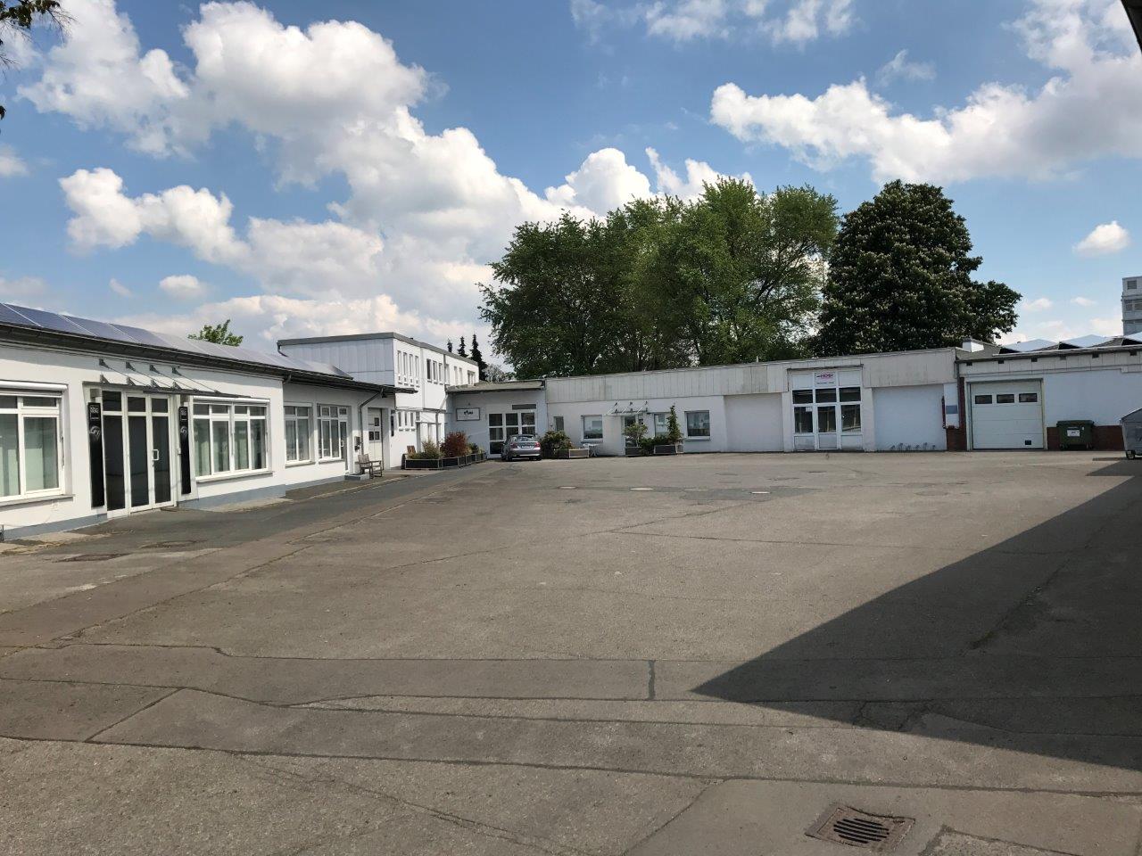 Kernmieter, der ein Kopfgebäude als Bürotrakt nutzt mit dahinterliegender Werkhalle und anschließendem Hochregal Lager.