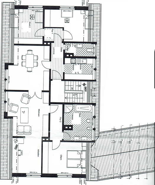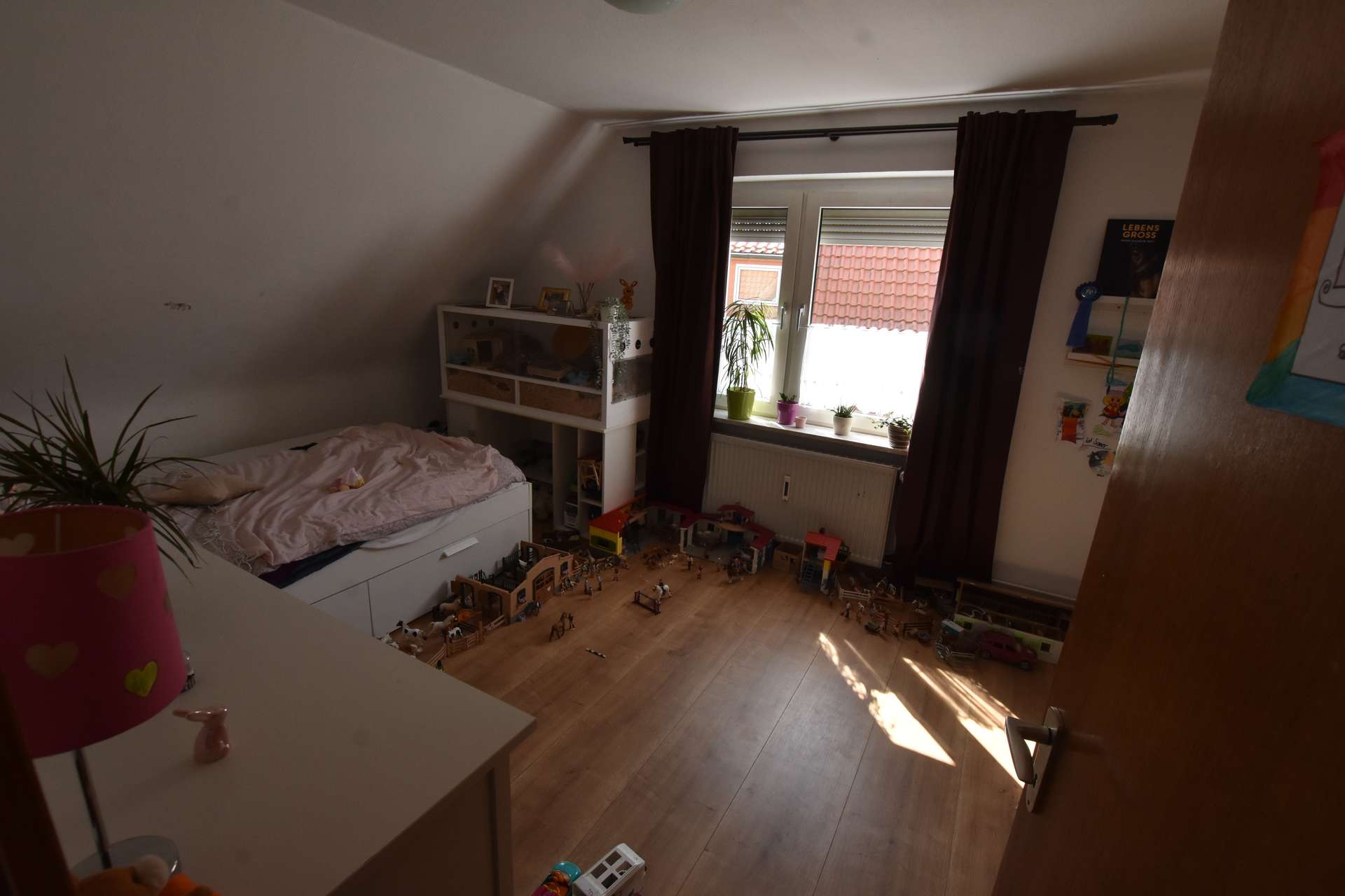 Das Obergeschoss beherbergt eine großzügige 6 Zimmer - Wohnung mit einer Fläche von ca. 115 m², die sich ideal für Familien oder eine Mehrzimmernutzung eignet. Sie besteht aus sechs Zimmern: einem weitläufigen Wohnzimmer, einem Esszimmer, zwei Kinderzimmern, einem Arbeitszimmer, einem Schlafzimmer, einer Küche mit Einbauküche, einem Gäste-WC und einem großen Tageslichtbad mit Badewanne.