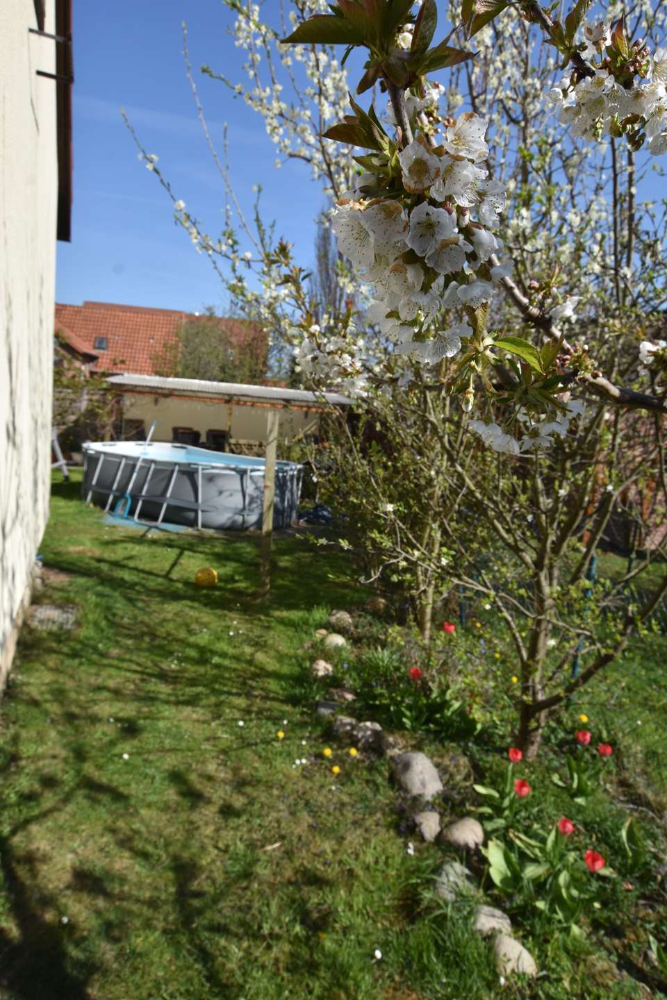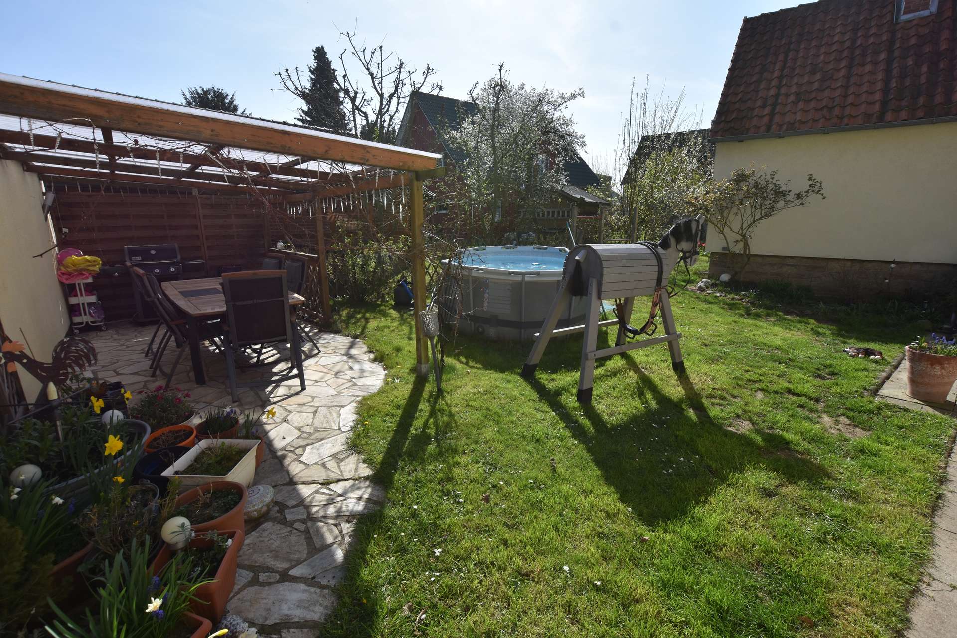 Der Außenbereich bietet eine Vielzahl an Nutzungsmöglichkeiten. Im hinteren Grundstücksteil befindet sich ein gepflegter Garten mit altem Baumbestand. Für die Gartenbewässerung steht ein eigener Brunnen zur Verfügung. Direkt angrenzend an das Haus liegt eine Terrasse – ideal für entspannte Stunden im Freien. Auf dem Grundstück befinden sich zudem zwei Garagen sowie drei zusätzliche Außenstellplätze. Der vorhandene Spitzboden bietet zusätzlichen Stauraum.